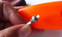Z torpilky vytiahneme bužírku, otvor rozšírime pomocou vrtáčika a zasunieme doň trubičku. Z vonkajšej strany trubičku odstrihneme asi 0,5 cm od torpilky a natavíme ju zapaľovačom. To isté, ale vo vzdialenosti asi 1,5 cm urobíme aj z druhej užšej strany.