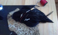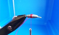 Polotovar upneme do zveráčika, tak aby bol pevný a neotáčal sa. V prípade verzie 2 a 3 si pomôžeme so špendlíkom alebo kúskom pevnejšieho drôtu. Po tomto nanesieme na miesto viazania lak, kde uchytíme viazaciu niť, pomocou ktorej prichytíme k záťaži niekoľko pierok zo skalpu kohúta alebo marabu perie. Koniec pri záťaži prekryjeme niťou vytvoríme stratený uzol a miesto priviazania prelakujeme.