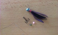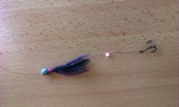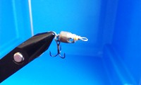 Na pružinovom drôte vytvoríme očko. Drôt odstrihneme a navlečieme naň korálku, záťaž a opäť korálku. Na konci vytvoríme očko do ktorého pomocou krúžku pripneme trojháčik.