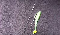 3. Systémik navlečieme a vtiahneme do rybky pomocou rybárskej ihly v smere od análneho otvoru k papuľke, kde necháme vytŕčať očko pre uchytenie vlasca. Pri love na mŕtvu rybku umiestnime na očko kúsok drôtika, ktorý by sa mal obtočiť okolo papuľky mŕtvej rybky.