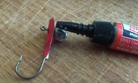 Z plechovice si vystrihneme pásik plechu. Potom z plechu vystrihneme budúci tvar marmyšky. V prednej časti necháme krídelka, ktoré sa potom založia. V strede prednej časti pliešok nastrihnite, aby sa vám dal lepšie prichytiť k háčiku. Na obrázku sú aj okrúhle pliešky, ktoré v strede netreba nastrihávať. Do zadnej časti pomocou noža v mieste, kde bude očko háčika urobíme dierku. Tú môžeme aj vyvŕtať. Cez vzniknutý otvor pretlačíme očko jigového háčika. Zahneme krídelka a pliešok pomocou kliešti prichytíme k háčiku. Následne pliešok zafixujeme k háčiku pomocou sekundového lepidla a neskôr zalejeme vodostálym lepidlom, vhodnejšie bude, ale asi použitie tavnej pištole. Po zaschnutí lepidla je marmyška pripravená na použitie.
