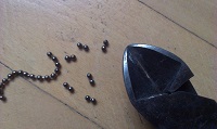 Pomocou štípacích kliešti alebo nožníc, si nastriháme potrebné množstvo očiek, ktoré neskôr použijeme pre viazanie. Tieto si odložíme do vhodnej krabičky, nemusíme tak však robiť a oči si nastrihať hneď pred viazaním. Pre lepšiu ilustráciu prikladám fotografie.