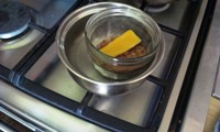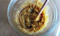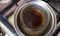 Kalafúnu a včelí vosk dáme do vhodnej nádoby, kde ich stavíme do tekutého stavu a kvapneme tam kvapku mazacieho oleja. Po tomto zmes odstavíme a po vychladnutí premiešame. Na obrázkoch som zmes tavil vo vodnom kúpeli, bolo to zdĺhave a nedosiahol som želaný efekt. Lepšie je zmes taviť v staršom hrnci, alebo plechovici. Vosk je vysoko lepivý a pracuje sa s ním dobre.