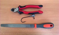 Pomocou kliešti odstránime časť hlavičky. Po jej odstránení následne hlavičku zo spodnej strany zbrúsime a zarovnáme. Potom je háčik už pripravený na použitie.